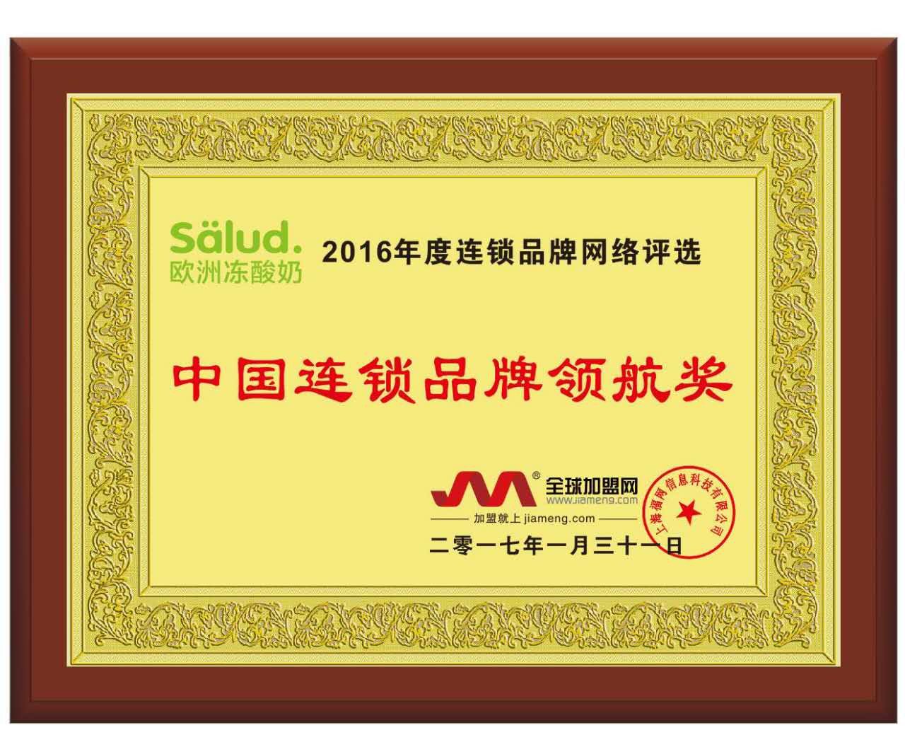 日前,在2016年度全国连锁品牌网络评选中,Salud欧洲冻酸奶一路领先,凭借健康、营养的产品品质和时尚、美丽的品牌形象受到网友们的喜爱。在70多万人参与网络投票中,Salud欧洲冻酸奶票数遥遥领先,荣膺“中国连锁品牌领航奖”。